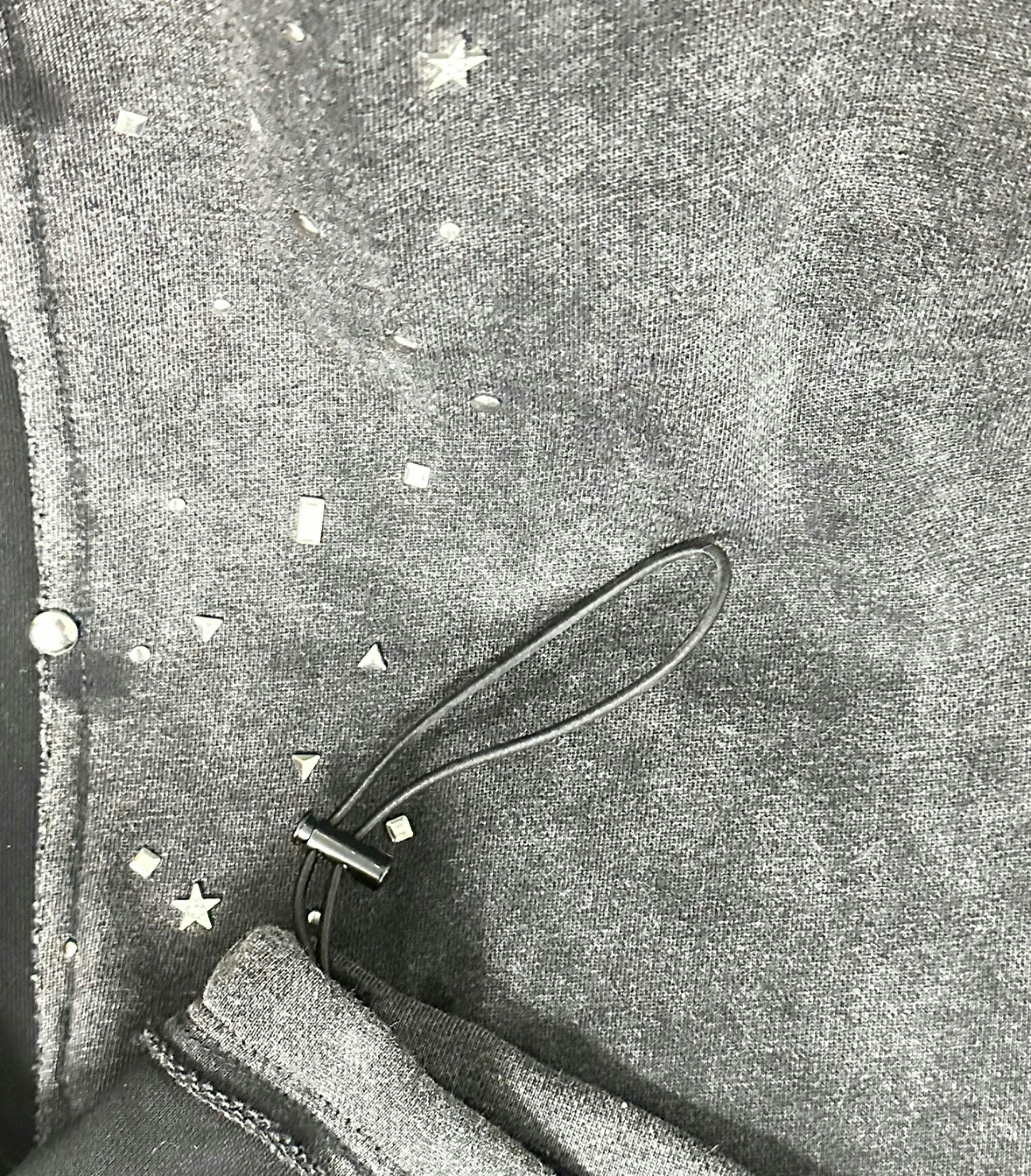 ウォッシュドブラック スパンコール ダメージ ドローストリングパンツ