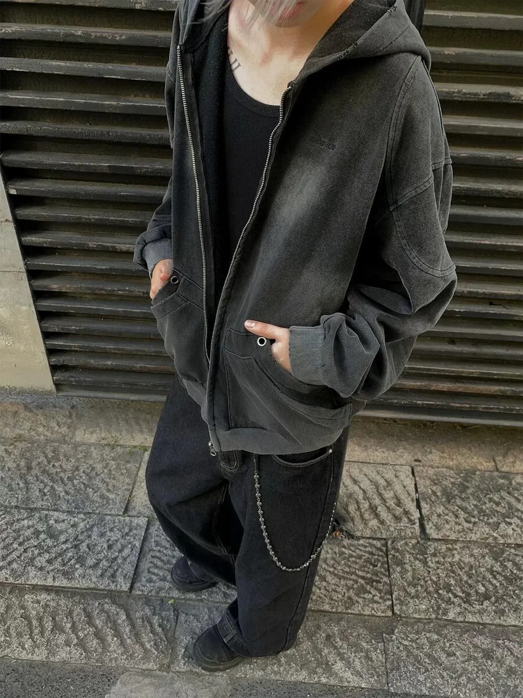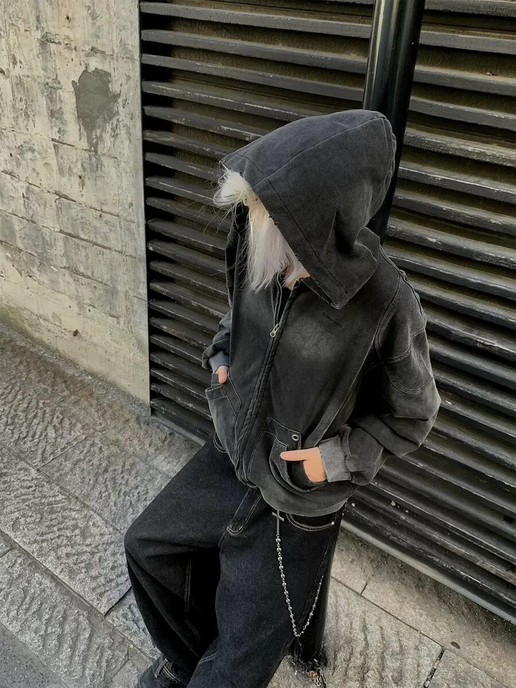 - This washed, vintage-inspired hoodie sweat jacket is the perfect street style piece.