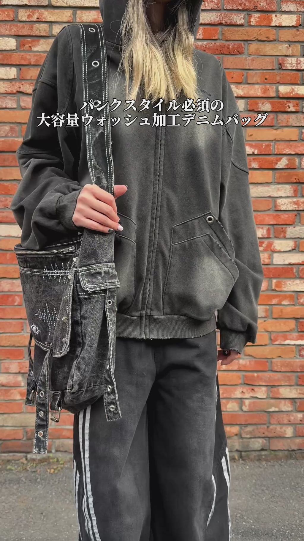 大容量だから、普段使いからお出かけまで何でも収納できる優れもの。スタッズやウォッシュ加工で、ヴィンテージ感たっぷりのデニム生地がかっこよさを引き立てます