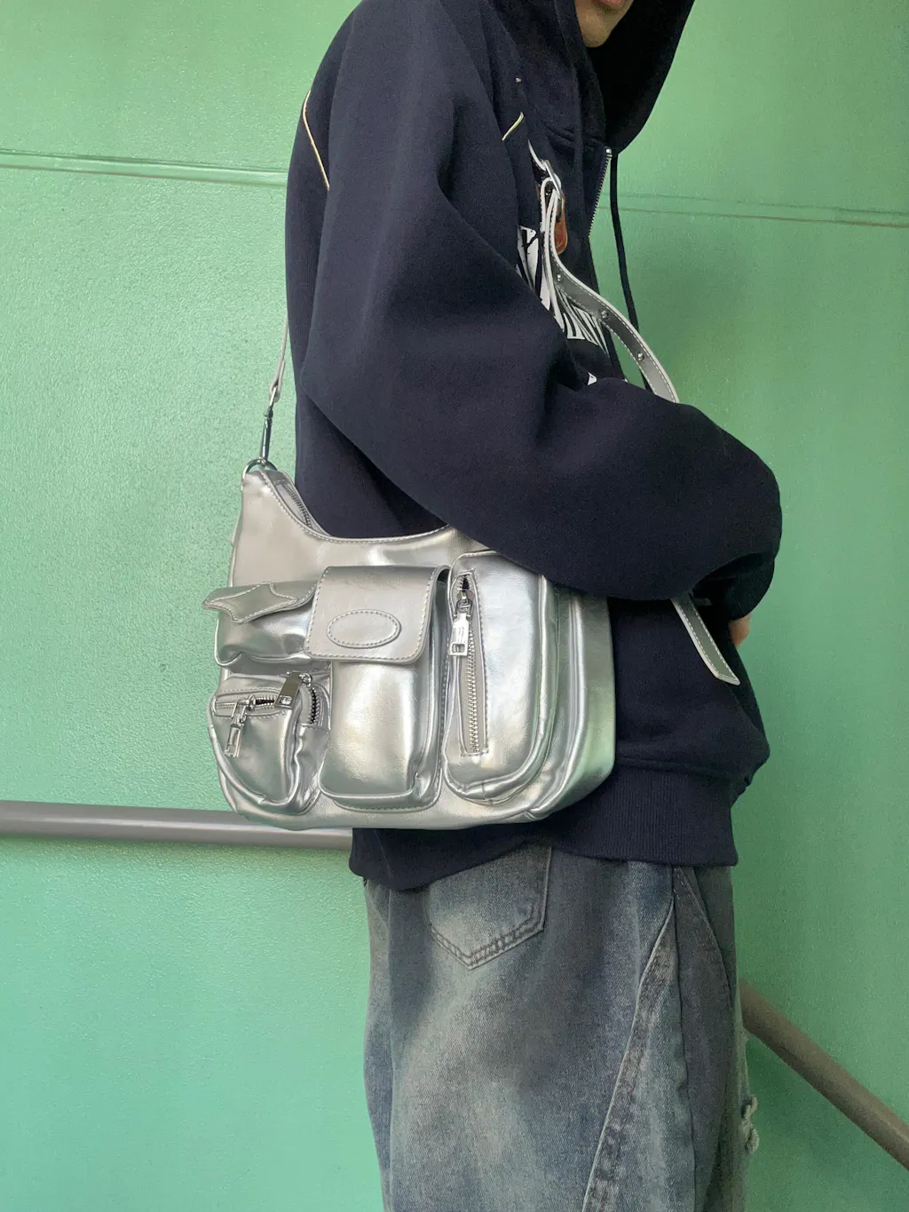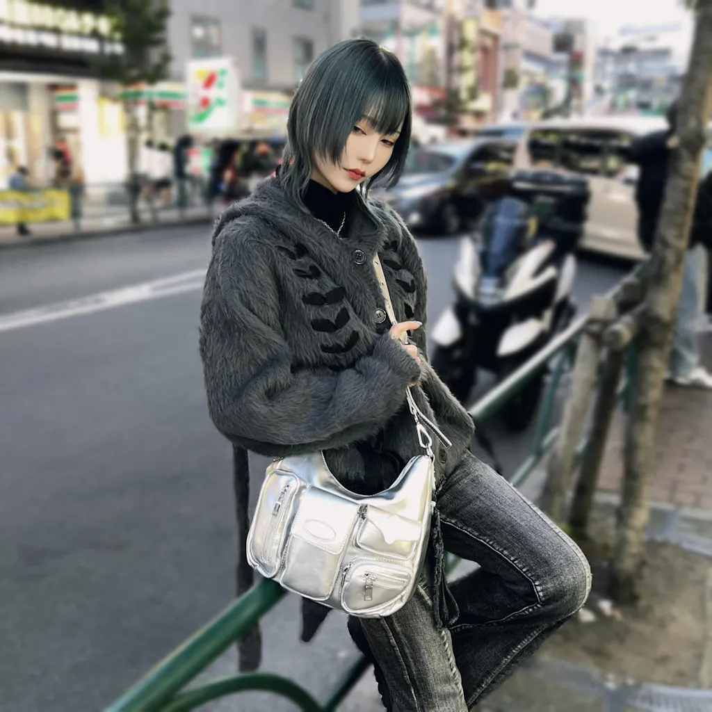 - このバッグは、クールなパンク風のデザインが特徴で、ストリートスタイルにぴったりのアイテムです。