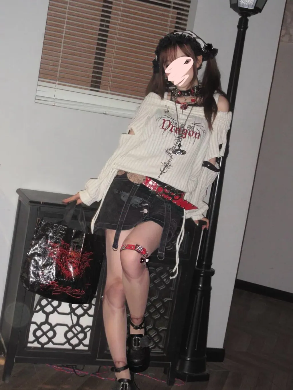 - 刺繍やスタッズのディテールが施されており、パンクな雰囲気をプラス。